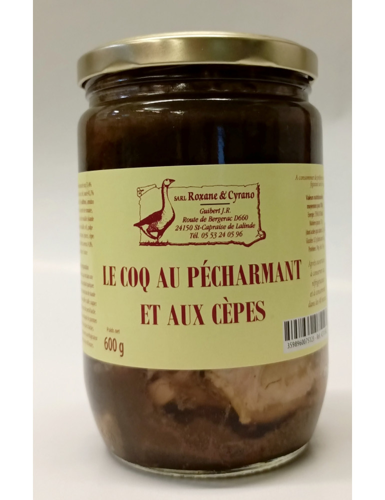 | Ingrédients | Morceaux de coq 51.4% (pilons, hauts de cuisses, sel),sauce 43.7% (eau, Pécharmant 32% ( sulfites),amidon de mais modifié, concenté de tomates, sang de porc, sel, fond de volaille (viande et jus de cèpes 4.8% |